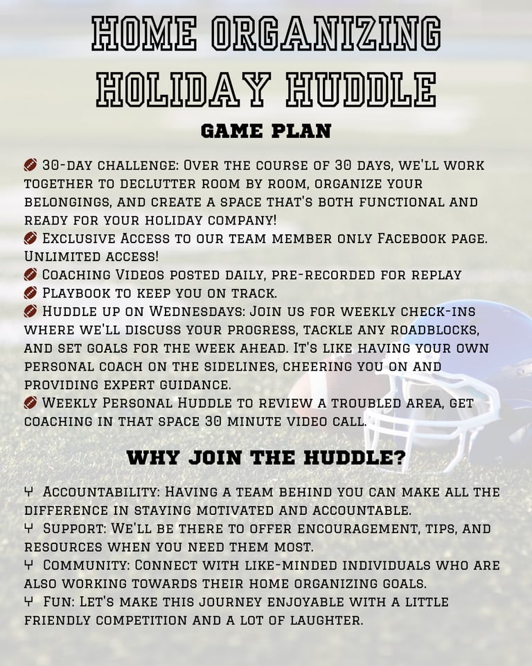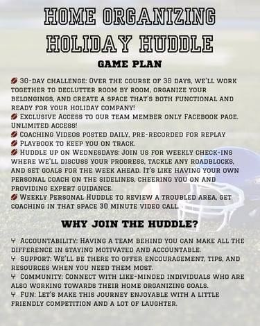 Get your game face on! The Home Organizing Holiday Huddle is your 30-day game plan to declutter, organize, and finally score that touchdown.